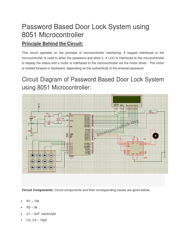 Projects on password based door lock system using microcontroller april 21 2014 by tarun agarwal 40 comments the basic requirement of security can be achieved by designing electrical or mechanical locks that are designed with one or a few keys but for locking a big area many locks are required.