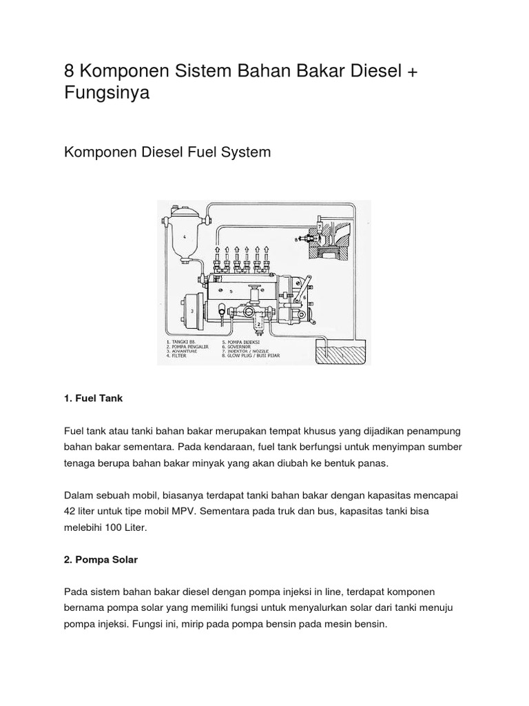 Sistem bahan bakar mesin diesel ketika kita mendengar kata mesin diesel maka yang ada di benak kita ialah sebuah mesin yang kuat serta selalu mengikuti perkembangan teknologi terkenal bandel mempunyai performa yang kuat serta menggunakan bahan bakar solar.