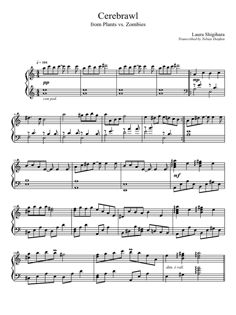 Piano plants vs zombies sheet music video game music video games so as most of you know i ve been trying my best to post piano versions of the music from plants vs.